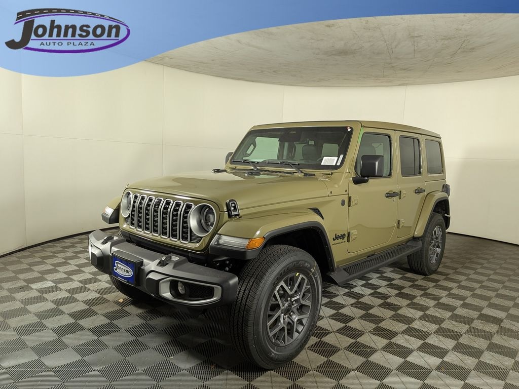 We look forward to serving you! Quick Order Package 22G, Sahara Popular Equipment Group (12.3" Touchscreen Display, 4G LTE Wi-Fi Hot Spot, Alpine Premium Audio System, Apple CarPlay, Auto High Beam Headlamp Control, Auto-Dimming Rear-View Mirror, Blind Spot & Cross Path Detection, Connected Travel & Traffic Services, Connectivity - US/Canada, Disassociated Touchscreen Display, For More Info, Call 800-643-2112, Google Android Auto, GPS Navigation, Hard Seat Back, HD Radio, Integrated Center Stack Radio, Integrated Off-Road Camera, Integrated Voice Command w/Bluetooth, Leather Wrapped Park Brake Handle, Leather Wrapped Shift Knob, McKinley Trimmed Seats, ParkSense Rear Park Assist System, Power 4-Way Driver Lumbar Adjust, Power 4-Way Passenger Lumbar Adjust, Power Adjust 8-Way Driver Seat, Power Adjust 8-Way Front Passenger Seat, Radio: Uconnect 5 Nav w/12.3" Display, Side Steps, SiriusXM Radio Service, SiriusXM w/360L, and Universal Garage Door Opener), Trailer Tow & Aux Switch Group (7 & 4 Pin Wiring Harness, Auxiliary Switches, and Class II Receiver Hitch), 3.45 Overall Top Gear Ratio, 4-Wheel Disc Brakes, 8 Speakers, ABS brakes, Air Conditioning, Alloy wheels, AM/FM radio: SiriusXM with 360L, Apple CarPlay/Android Auto, Automatic temperature control, Aux Battery, Brake assist, Cloth Low-Back Bucket Seats, Compass, Delay-off headlights, Driver door bin, Driver vanity mirror, Dual front impact airbags, Dual front side impact airbags, Electronic Stability Control, Emergency communication system: Jeep Connect, Front anti-roll bar, Front Bucket Seats, Front Center Armrest w/Storage, Front dual zone A/C, Front fog lights, Front License Plate Bracket, Front reading lights, Fully automatic headlights, Heated door mirrors, Heated front seats, Heated steering wheel, Heavy Duty Suspension w/Gas Shocks, Illuminated entry, Integrated roll-over protection, Low tire pressure warning, MOPAR All-Weather Floor Mats, Non-Lock Fuel Cap w/o Discriminator, Occupant sensing airbag, Outside temperature display, Overhead airbag, Panic alarm, ParkView Rear Back-Up Camera, Passenger door bin, Passenger vanity mirror, Power door mirrors, Power steering, Power Top Quarter Window Storage Bag, Power windows, Radio data system, Radio: Uconnect 5 w/12.3" Display, Rear anti-roll bar, Rear reading lights, Rear Window Defroster, Rear Window Wiper/Washer, Remote keyless entry, Removable Rear Quarter Windows, Security system, Sky 1-Touch Power Top, Speed control, Split folding rear seat, Steering wheel mounted audio controls, Stop-Start Dual Battery System, Tachometer, Telescoping steering wheel, Tilt steering wheel, Traction control, Trip computer, Variably intermittent wipers, Voltmeter, and Wheels: 18" x 7.5" Machine/Painted GraY. All customers may not qualify for all rebates. Price includes: $1500 - 2026 National Retail Bonus Cash . Exp. 11/03/2025