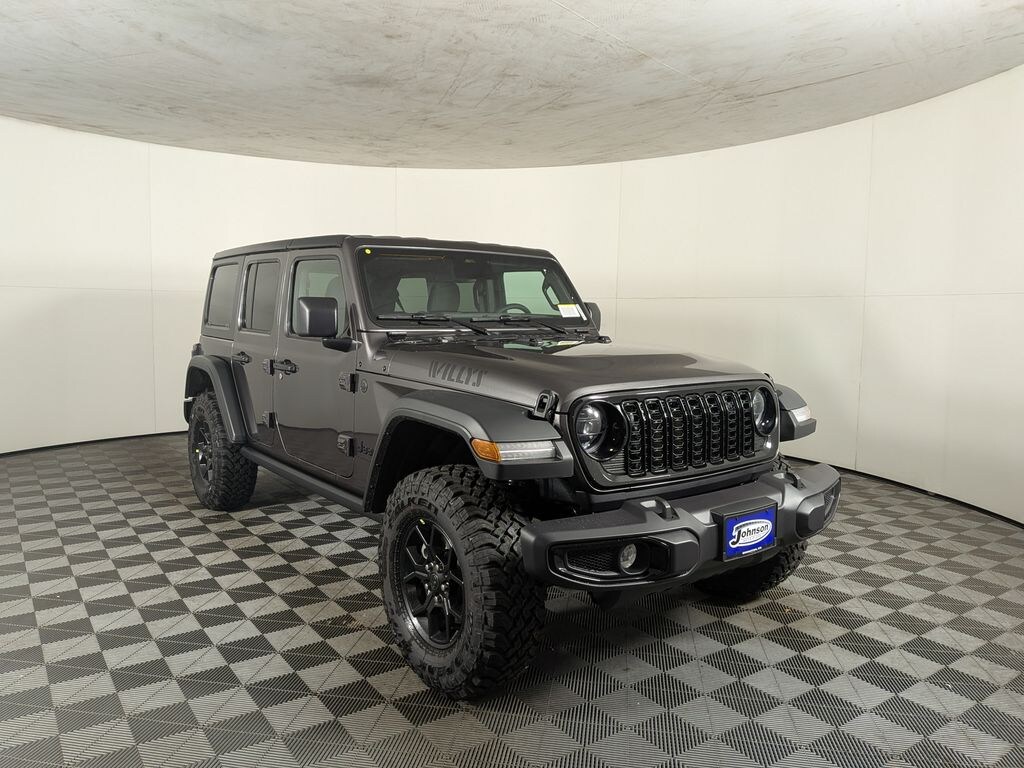 We look forward to serving you! Convenience Group (2-Door Passive Entry, Front Door Locks, Air Conditioning w/Auto Temperature Control, Air Filtering, Cluster 7.0" TFT Color Display, Emergency/Assistance Call, Heated Front Seats, Heated Steering Wheel, Remote Start System, and Universal Garage Door Opener), Quick Order Package 24W Willys (4-Wheel Drive Swing Gate Decal, 7 & 4 Pin Wiring Harness, Advanced Brake Assist, Automatic Headlamps, Auxiliary Switches, Black Grille, Class II Receiver Hitch, Conventional Differential Front Axle, Corning Gorilla Glass, Dana M210 Wide HD Tube Front Axle, Dana M220 Wide Rear Axle, Daytime Running Lamps LED Accents, Deep Tint Sunscreen Windows, E-Locker Rear Axle, Enhanced Adaptive Cruise Control, Front LED Fog Lamps, Full Speed Forward Collision Warning Plus, Injection Molded Black Rear Bumper, LED Premium Reflector Headlamps, Mold In Color Bumper w/Gloss Black, Molded in Color Rubicon Highline Flare, MOPAR All-Weather Floor Mats, Off-Road Plus Mode, Power Heated Mirrors, Premium Wrapped Steering Wheel, Security Alarm, Sun Visors w/Illuminated Vanity Mirrors, Wheels: 17" x 7.5" Painted Black, Willy's Suspension, and Willys Hood Decal), Safety Group (Auto High Beam Headlamp Control, Blind Spot & Cross Path Detection, LED Taillamps, and ParkSense Rear Park Assist System), Trailer Tow & Aux Switch Group, 4-Wheel Disc Brakes, 8 Speakers, ABS brakes, Air Conditioning, AM/FM radio: SiriusXM with 360L, Apple CarPlay/Android Auto, Aux Battery, Black 3-Piece Hard Top, Brake assist, Cloth Low-Back Bucket Seats, Compass, Delay-off headlights, Driver door bin, Driver vanity mirror, Dual front impact airbags, Dual front side impact airbags, Electronic Stability Control, Freedom Panel Storage Bag, Front anti-roll bar, Front Bucket Seats, Front Center Armrest w/Storage, Front fog lights, Front reading lights, Illuminated entry, Integrated roll-over protection, Low tire pressure warning, Non-Lock Fuel Cap w/o Discriminator, Normal Duty Suspension, Occupant sensing airbag, Outside temperature display, Overhead airbag, Panic alarm, ParkView Rear Back-Up Camera, Passenger door bin, Passenger vanity mirror, Power steering, Power windows, Radio data system, Radio: Uconnect 5 w/12.3" Display, Rear anti-roll bar, Rear reading lights, Rear Window Defroster, Rear Window Wiper/Washer, Remote keyless entry, Speed control, Split folding rear seat, Steering wheel mounted audio controls, Stop-Start Dual Battery System, Tachometer, Telescoping steering wheel, Tilt steering wheel, Traction control, Trip computer, Variably intermittent wipers, and Wheels: 17" x 7.5" Black Steel StyleD. All customers may not qualify for all rebates. Price includes: $1500 - 2026 National Retail Bonus Cash . Exp. 12/01/2025 $1500 - 2026 National Stellantis Loyalty Retail Bonus Cash . Exp. 12/01/2025