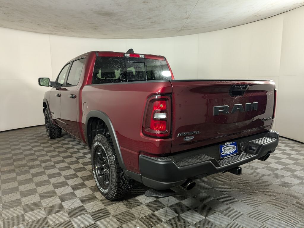 We look forward to serving you! Bed Utility Group (Exterior 115V AC Outlet, MOPAR 4 Adjustable Cargo Tie-Down Hooks, and MOPAR Spray In Bedliner), Quick Order Package 21W Rebel, Rebel Level 2 Equipment Group (115V Auxiliary Rear Power Outlet, 14.4" Touchscreen Display, 2-Door Passive Entry, Front Door Locks, 4G LTE Wi-Fi Hot Spot, Accent Color Door Handles, Accent Color Premium Power Mirrors, Accent Color Tailgate Handle, Apple CarPlay, Auto Power-Folding Mirrors, Auto-Dimming Exterior Driver Mirror, Black Painted Exterior Mirrors Caps, Connected Travel & Traffic Services, Connectivity - US/Canada, Convex Wide-Angle Exterior Mirror Insert, Disassociated Touchscreen Display, Driver Seat Memory, Dual Wireless Charging Pad, Exterior Mirrors Approach Lamps, Exterior Mirrors Courtesy Lamps, Exterior Mirrors w/Heating Element, Exterior Mirrors w/Memory, Exterior Mirrors w/Supplemental Signals, Front Passenger Interactive Display, Global Telematics Box Module (TBM), Google Android Auto, GPS Antenna Input, GPS Navigation, harman/kardon 19 Speaker Premium Sound, HD Radio, Heated Second Row Seats, Integrated Center Stack Radio, Integrated Voice Command w/Bluetooth, Media Hub w/2 Charge Only USBs, Off-Road Information Pages, Power 2-Way Passenger Lumbar Adjust, Power Adjust 8-Way Front Passenger Seat, Power Adjustable Pedals w/Memory, Power Tailgate, Proximity Approach/Departure Lamps, Radio: Uconnect 5 Nav w/14.4" Display, Radio/Driver Seat/Mirrors/Pedals Memory, Rain Sensitive Windshield Wipers, Rear Window Defroster, Security Alarm, SiriusXM Radio Service, SiriusXM w/360L, Smartphone As A Key Capable, and USB Host Flip), 10 Speakers, 3.92 Rear Axle Ratio, 33 Gallon Fuel Tank, 4 Way Front Headrests, 4-Wheel Disc Brakes, ABS brakes, Air Conditioning, Alloy wheels, AM/FM radio: SiriusXM with 360L, Apple CarPlay/Android Auto, Auto High-beam Headlights, Auto-dimming Rear-View mirror, Automatic temperature control, Black Exterior Mirrors, Brake assist, Bucket Seats, Cloth/Vinyl Bucket Seats, Compass, Delay-off headlights, Driver door bin, Driver vanity mirror, Dual front impact airbags, Dual front side impact airbags, Electronic Stability Control, Front anti-roll bar, Front Bucket Seats, Front Center Armrest w/Storage, Front dual zone A/C, Front fog lights, Front License Plate Bracket, Front reading lights, Front Seat Back Map Pockets, Front wheel independent suspension, Full Length Upgraded Floor Console, Fully automatic headlights, Garage door transmitter, Heated door mirrors, Heated Front Seats, Heated front seats, Heated Steering Wheel, Heated steering wheel, Illuminated entry, Leather steering wheel, Low tire pressure warning, Manual Folding Exterior Mirrors, Navigation System, Occupant sensing airbag, Outside temperature display, Overhead airbag, Overhead console, Panic alarm, ParkView Rear Back-Up Camera, Passenger door bin, Passenger vanity mirror, Power 2-Way Driver Lumbar Adjust, Power Adjust 8-Way Driver Seat, Power door mirrors, Power driver seat, Power steering, Power windows, Radio data system, Radio: Uconnect 5 Nav w/12.0" Display, Rear 60/40 Folding Seat, Rear anti-roll bar, Rear seat center armrest, Rear step bumper, Remote keyless entry, Speed control, Split folding rear seat, Steering wheel mounted audio controls, Tachometer, Telescoping steering wheel, Tilt steering wheel, Traction control, Trailer Brake Control, Trip computer, Variably intermittent wipers, Voltmeter, and Wheels: 18" x 8.0" Painted Mid-Gloss BlacK. All customers may not qualify for all rebates. Price includes: $3500 - 2026 National Retail Consumer Cash . Exp. 11/03/2025
