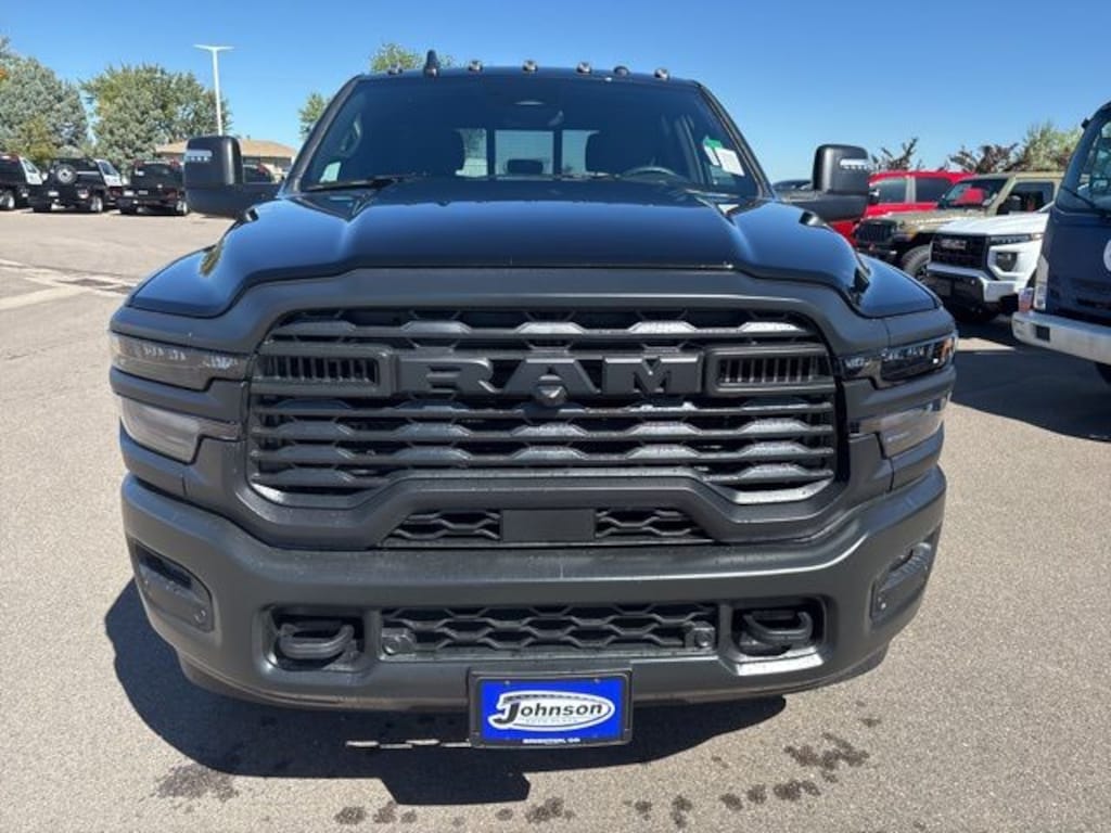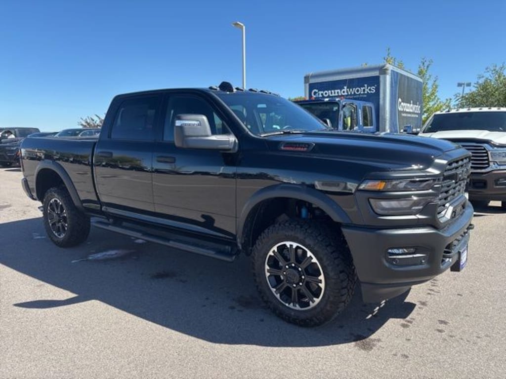 We look forward to serving you! Quick Order Package 2UB Warlock (2 Way Rear Headrest Seat, 4 Way Front Headrests, 40/20/40 Split Bench Seat, Anti-Spin Differential Rear Axle, Auto Power-Folding Mirrors, Black Exterior Mirrors, Black Wheel Center Hub, Black Wheel Flares, Carpet Floor Covering, Cloth 40/20/40 Bench Seat, Exterior Mirrors Courtesy Lamps, Exterior Mirrors w/Heating Element, Exterior Mirrors w/Supplemental Signals, Forward & Reverse Utility Lights, Front Armrest w/Cupholders, Front Performance Tuned Shock Absorbers, Hill Descent Control, Manual Adjust 4-Way Driver Seat, Manual Adjust 4-Way Front Passenger Seat, Mirror Running Lights, MOPAR Front & Rear Rubber Floor Mats, Power Adjust Mirrors, Power Heated Folding Telescopic Mirrors, Power Telescoping Mirrors, Power-Adjustable Convex Aux Mirrors, Rear Folding Seat, Rear Performance Tuned Shock Absorbers, Remote USB Port - Charge Only, Storage Tray, Warlock Decal, and Wheels: 20" x 8.0" Black Diamond Cut Aluminum), Tradesman Level 1 Equipment Group (115V Auxiliary Front Power Outlet, 12" Touchscreen Display, 400W Inverter, 4G LTE Wi-Fi Hot Spot, Air Conditioning ATC w/Dual Zone Control, Alexa Built-In, Apple CarPlay, Auto-Dimming Rear-View Mirror, Connected Travel & Traffic Services, Connectivity - US/Canada, Disassociated Touchscreen Display, Emergency Vehicle Alert System (EVAS), Exterior 115V AC Outlet, For Details, Visit DriveUconnect.com, For More Info, Call 800-643-2112, Global Telematics Box Module (TBM), Google Android Auto, GPS Antenna Input, GPS Navigation, HD Radio, Integrated Voice Command w/Bluetooth, Off-Road Info Pages, Radio: Uconnect 5 Nav w/12.0" Display, Rear Power Sliding Window, Selectable Tire Fill Alert, SiriusXM Radio Service, SiriusXM w/360L, Tinted Acoustic Windshield Glass, and Trailer Tow Pages), 3.73 Axle Ratio, 4-Wheel Disc Brakes, 6 Speakers, ABS brakes, Air Conditioning, AM/FM radio: SiriusXM, Apple CarPlay/Android Auto, Brake assist, Clearance Lamps, Compass, Delay-off headlights, Driver door bin, Dual front impact airbags, Dual front side impact airbags, Electronic Stability Control, Front anti-roll bar, Front Center Armrest w/Storage, Front fog lights, Front License Plate Bracket, Front reading lights, Fully automatic headlights, Heavy Duty Vinyl 40/20/40 Split Bench Seat, Illuminated entry, Low tire pressure warning, Manual Folding Exterior Mirrors, Manual Telescoping Mirrors, Manufacturer's Statement of Origin, Mopar Black Tubular Side Steps, Occupant sensing airbag, Outside temperature display, Overhead airbag, Overhead console, Panic alarm, ParkView Rear Back-Up Camera, Passenger door bin, Passenger vanity mirror, Power steering, Power windows, Radio data system, Radio: Uconnect 5 w/8.4" Display, Rear anti-roll bar, Rear step bumper, Rear Wheelhouse Liners, Rear window defroster, Remote keyless entry, Speed control, Tachometer, Tilt steering wheel, Traction control, Variably intermittent wipers, Voltmeter, and Wheels: 17" x 7.5" Black Steel StyleD. All customers may not qualify for all rebates. Price includes: $1000 - 2026 National Bonus Cash . Exp. 11/03/2025