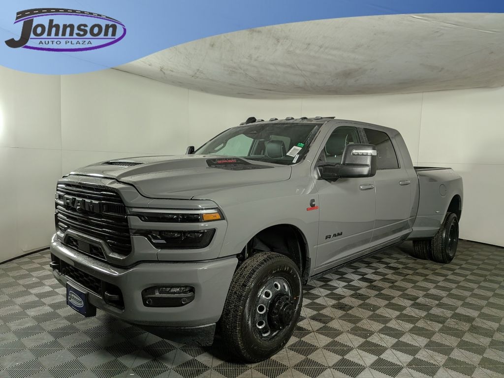 We look forward to serving you! Cold Weather Group (Engine Block Heater and MOPAR Winter Front Grille Cover), Laramie Level 2 Plus Equipment Group (#1 Seat Foam Cushion, 115V Auxiliary Rear Power Outlet, 14.4" Touchscreen Display, 17 Speaker Harman/Kardon Premium Sound, 2 Way Rear Headrest Seat, 4 Way Front Headrests, 4G LTE Wi-Fi Hot Spot, Active Lane Management System, Adaptive Steering System, Alexa Built-in, Apple CarPlay, Auto Adjust in Reverse Exterior Mirrors, Auto Dim Exterior Mirror, Auto High Beam Headlamp Control, Auto Power-Folding Mirrors, Auto-Dimming Exterior Passenger Mirror, Bucket Seats, Center Stop Lamp with Cargo View Camera, Connected Travel and Traffic Services, Connectivity - US/Canada, Disassociated Touchscreen Display, Drowsy Driver Detection, Dual Wireless Charging Pad, Emergency Vehicle Alert System (EVAS), Exterior Mirrors Courtesy Lamps, Exterior Mirrors with Heating Element, Exterior Mirrors with Memory, Exterior Mirrors with Supplemental Signals, Foam Bottle Insert (door Trim Panel), For Details Visit DriveUconnect.com, For More Info, Call 800-643-2112, Forward and Reverse Utility Lights, Front Seat Back Map Pockets, Full Length Upgraded Floor Console, Global Telematics Box Module, Google Android Auto, GPS Antenna Input, GPS Navigation, HD Radio, Heated Front Seats, Heated Steering Wheel, High Back Seats, Integrated Voice Command with Bluetooth, Leather Trimmed Bucket Seats, LED Bed Lighting, Mirror Running Lights, MOPAR Deployable Bed Step, MOPAR Spray in Bedliner, Off-Road Information Pages, Power 2-Way Driver Lumbar Adjust, Power 2-Way Passenger Lumbar Adjust, Power Adjust 8-Way Driver Seat, Power Adjust 8-Way Front Passenger Seat, Power Adjust Mirrors, Power Adjustable Pedals with Memory, Power Deployable Running Boards, Power Heated Folding Telescopic Mirrors with Memory, Power Telescoping Mirrors, Power-Adjustable Convex Aux Mirrors, Radio: Uconnect 5 Nav with 14.4" Display, Radio/Driver Seat/Mirrors/Pedals Memory, Rain Sensitive Windshield Wipers, Rear 60/40 Folding Seat, Remote Tailgate Release, Selectable Tire Fill Alert, SiriusXM Radio Service, SiriusXM with 360L, Traffic Sign Recognition, Trailer Tow Pages, and Ventilated Front Seats), Night Edition (Black Exterior Truck Badging, Black Wheel Center Hub, Body Color Grille Surround, Gloss Black Grille Billets/Accents, and Sport Performance Hood), Quick Order Package 24H Laramie, Towing Technology Group (MOPAR Trailer Camera Wiring with No Camera, Surround View Camera System, Trailer Reverse Guidance, and Trailer Tire Pressure Monitoring System), 10 Speakers, 3.42 Axle Ratio, 4-Wheel Disc Brakes, 5th Wheel/Gooseneck Towing Prep Group, 6,000 lbs Front Axle with Hub Extension, ABS brakes, Air Conditioning, Alloy wheels, AM/FM radio: SiriusXM with 360L, Apple CarPlay/Android Auto, Auto-dimming Rear-View mirror, Automatic temperature control, Box and Rear Fender Clearance Lamps, Brake assist, Bumpers: body-color, Center Hub, Chrome Exterior Mirrors, Clearance Lamps, Compass, Delay-off headlights, Driver door bin, Driver vanity mirror, Dual front impact airbags, Dual front side impact airbags, Dual Rear Wheels, Electronic Stability Control, Front anti-roll bar, Front Center Armrest w/Storage, Front dual zone A/C, Front fog lights, Front License Plate Bracket, Front reading lights, Fully automatic headlights, Garage door transmitter, Heated door mirrors, Heated front seats, Heated steering wheel, Illuminated entry, Leather Trim 40/20/40 Bench Seat, Low tire pressure warning, Manufacturer's Statement of Origin, Navigation System, All customers may not qualify for all rebates. Price includes: $1000 - 2026 National Bonus Cash . Exp