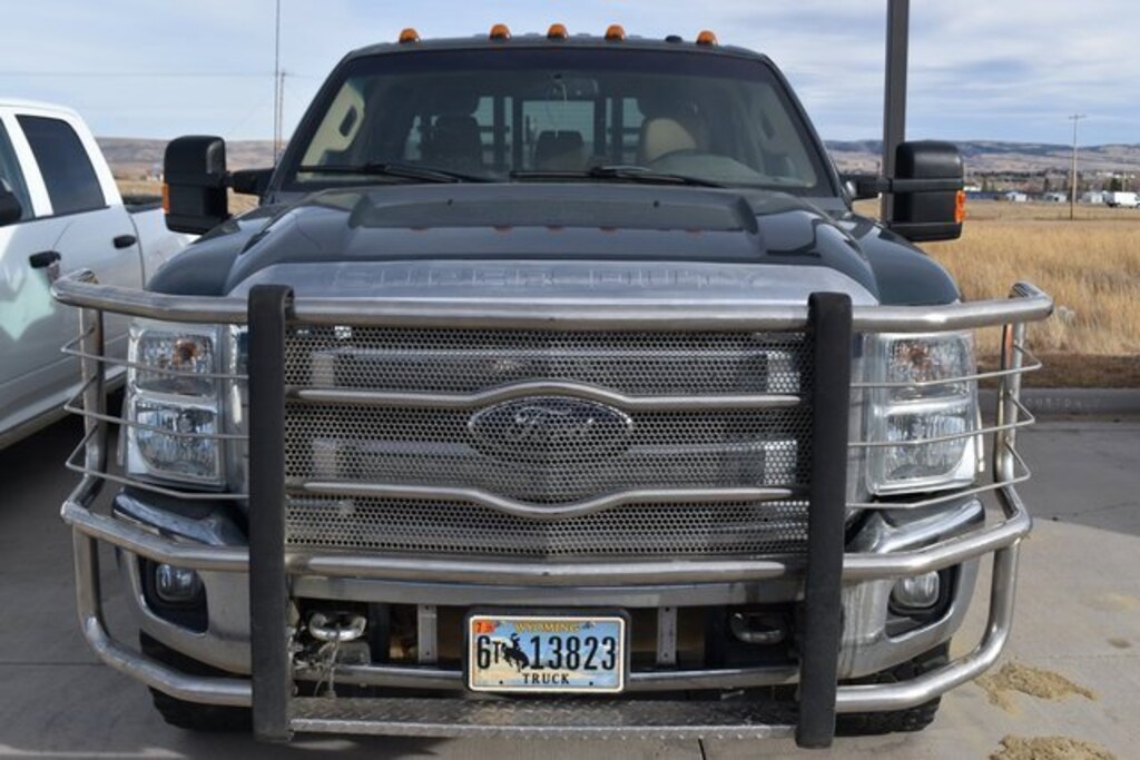 Power Stroke 6.7L V8 DI 32V OHV Turbodiesel, 4WD, 18" Bright Machined 6-Spoke Cast Alum Wheels, 4-Wheel Disc Brakes, 5th Wheel/Gooseneck Hitch Prep Package, 9 Speakers, ABS brakes, Adjustable pedals, Air Conditioning, All-Weather Floor Mats, Alloy wheels, AM/FM radio: SIRIUS, Auto-dimming Rear-View mirror, Automatic temperature control, Bodyside Molding, Brake assist, Bumpers: chrome, CD player, Chrome Package, Compass, Delay-off headlights, Driver door bin, Driver vanity mirror, Dual front impact airbags, Dual front side impact airbags, Electronic Stability Control, Engine Block Heater, Extra Heavy Duty 200-Amp Alternator, Front anti-roll bar, Front Bucket Seats, Front Center Armrest, Front dual zone A/C, Front fog lights, Front reading lights, Fully automatic headlights, FX4 Off-Road Package, Heated Backlight/Rear Window Defrost, Heated door mirrors, Illuminated entry, Lariat Interior Package, Leather steering wheel, Low tire pressure warning, Order Code 618A, Outside temperature display, Overhead airbag, Overhead console, Panic alarm, Passenger door bin, Passenger vanity mirror, Power door mirrors, Power driver seat, Power passenger seat, Power steering, Power windows, Premium Leather Seating Surfaces 40/Console/40, Radio data system, Radio: Premium AM/FM Stereo w/Single CD/MP3 Player, Rapid-Heat Supplemental Cab Heater, Rear Parking Sensors, Rear reading lights, Rear seat center armrest, Rear step bumper, Rear-View Camera, Remote keyless entry, Remote Start System, Roof Clearance Lights, Satellite Radio, Security system, Speed control, Split folding rear seat, Steering wheel mounted audio controls, Tachometer, Telescoping steering wheel, Tilt steering wheel, Traction control, Trip computer, Turn signal indicator mirrors, Variably intermittent wipers, Power Stroke 6.7L V8 DI 32V OHV Turbodiesel, 4WD.